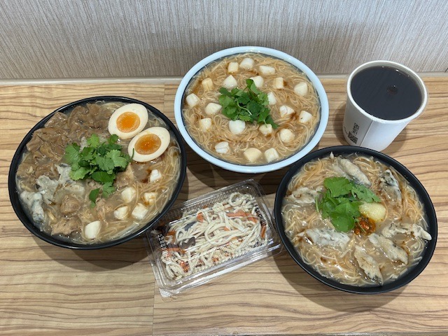 今天麵線分別點了滿溢特盛、干貝麵線、魚羹麵線,店家有分大碗跟特大碗,滿溢特盛、干貝麵線為特大碗,魚羹麵線為大碗,基本上一般女生來說大碗的份量已經很有飽足感了,兩種碗的大小放在旁邊,比例上的差異特別明顯,也可以另外針對喜歡的配料加料