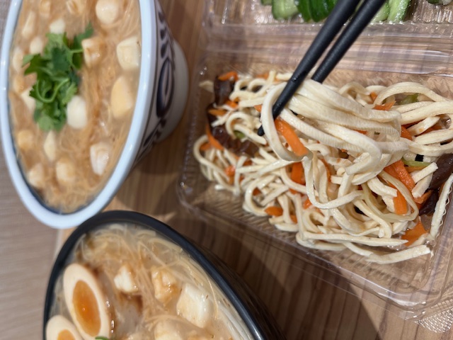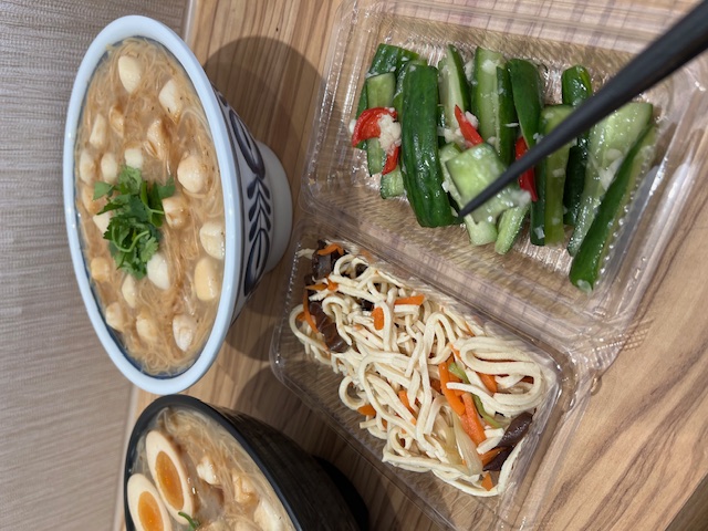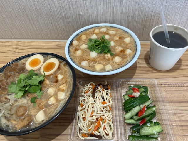 冰箱內的小菜和飲料可以付款後自取,這邊拿了涼拌小黃瓜、涼拌干絲,還有一杯關西仙草茶