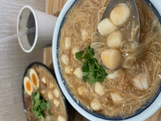 整碗的干貝撲滿在麵線上面,這一碗就是干貝麵線,目測干貝的數量至少有塊20顆,每一顆的干貝都非常大塊,肉質細嫩帶點海鮮味的鮮甜,喜歡干貝的朋友們別錯過