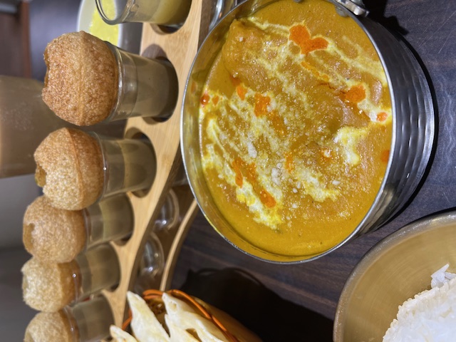米飯十分粒粒分明不粘糊,使用的是印度香米,搭配北印度鮮魚咖哩醬汁非常對味,北印度鮮魚咖哩加入多種香料,最後加入椰漿,魚肉給得很大塊且目測至少有四五塊,淋在米飯上非常下飯