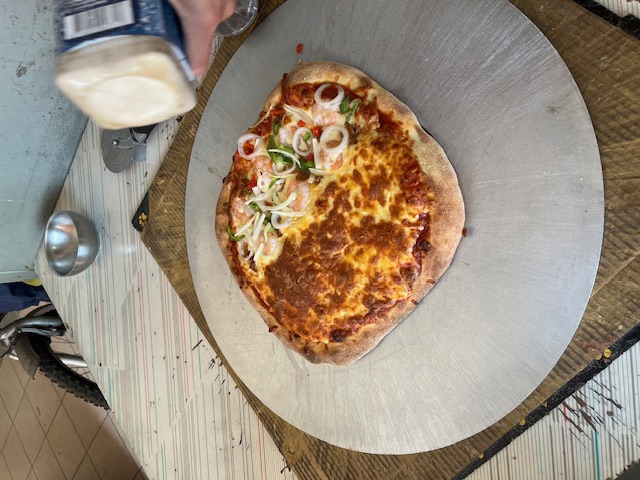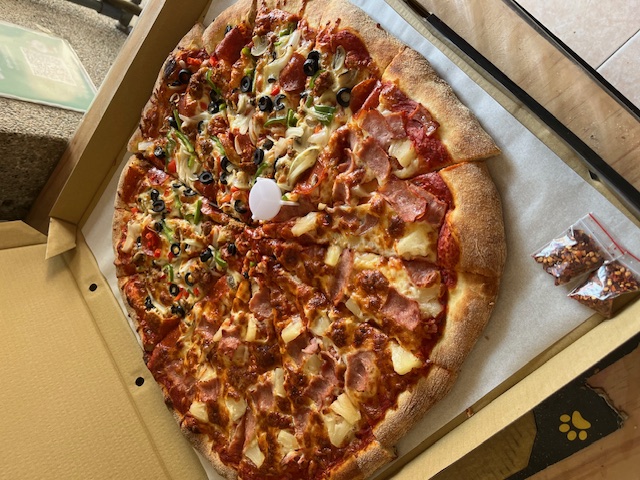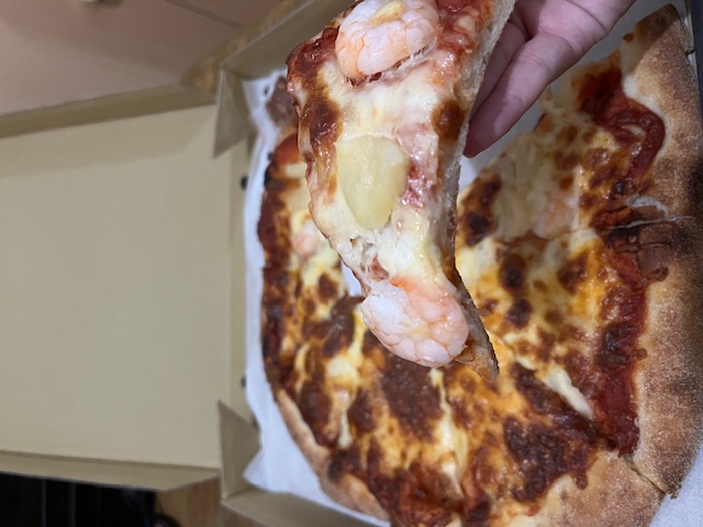 口味有將近40多種,若有選擇障礙也可以雙拼,這次點了13吋的雙拼,經典起司加鮮蝦夏威夷,鮮蝦夏威夷滿滿的蝦仁和鳳梨配料,每一單片披薩至少都有兩大隻蝦仁,經典起司的起司厚度已經快要超越餅皮,愛吃起司的朋友千萬別錯過