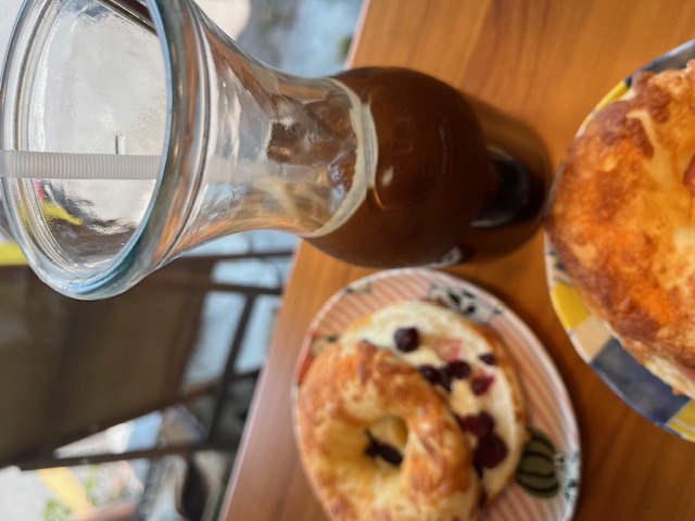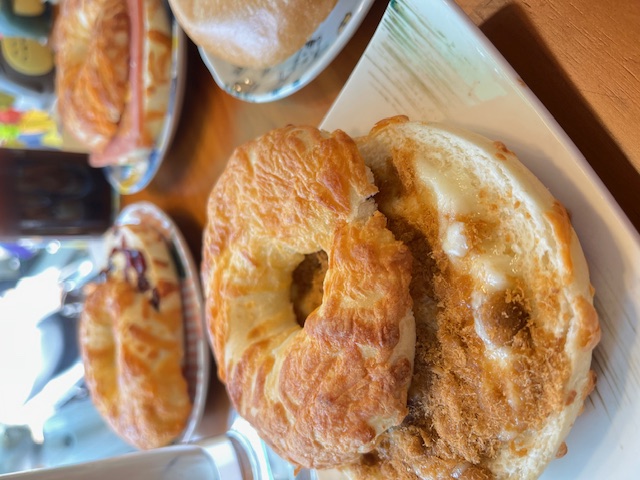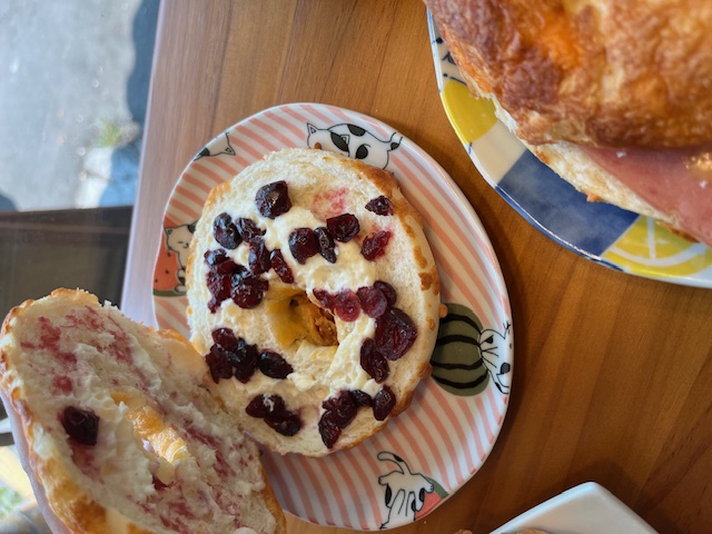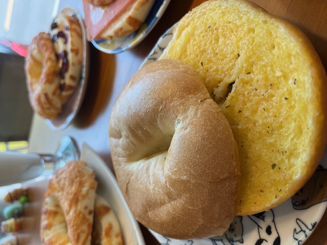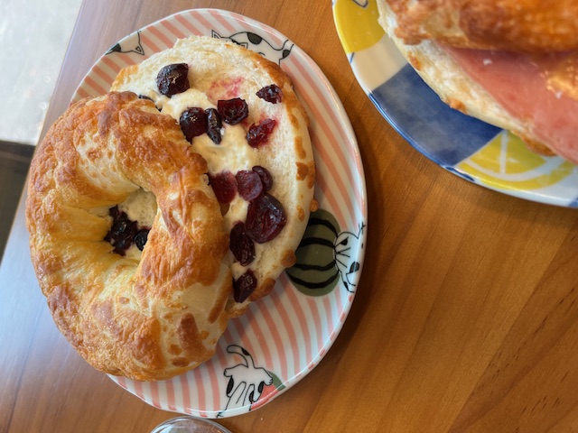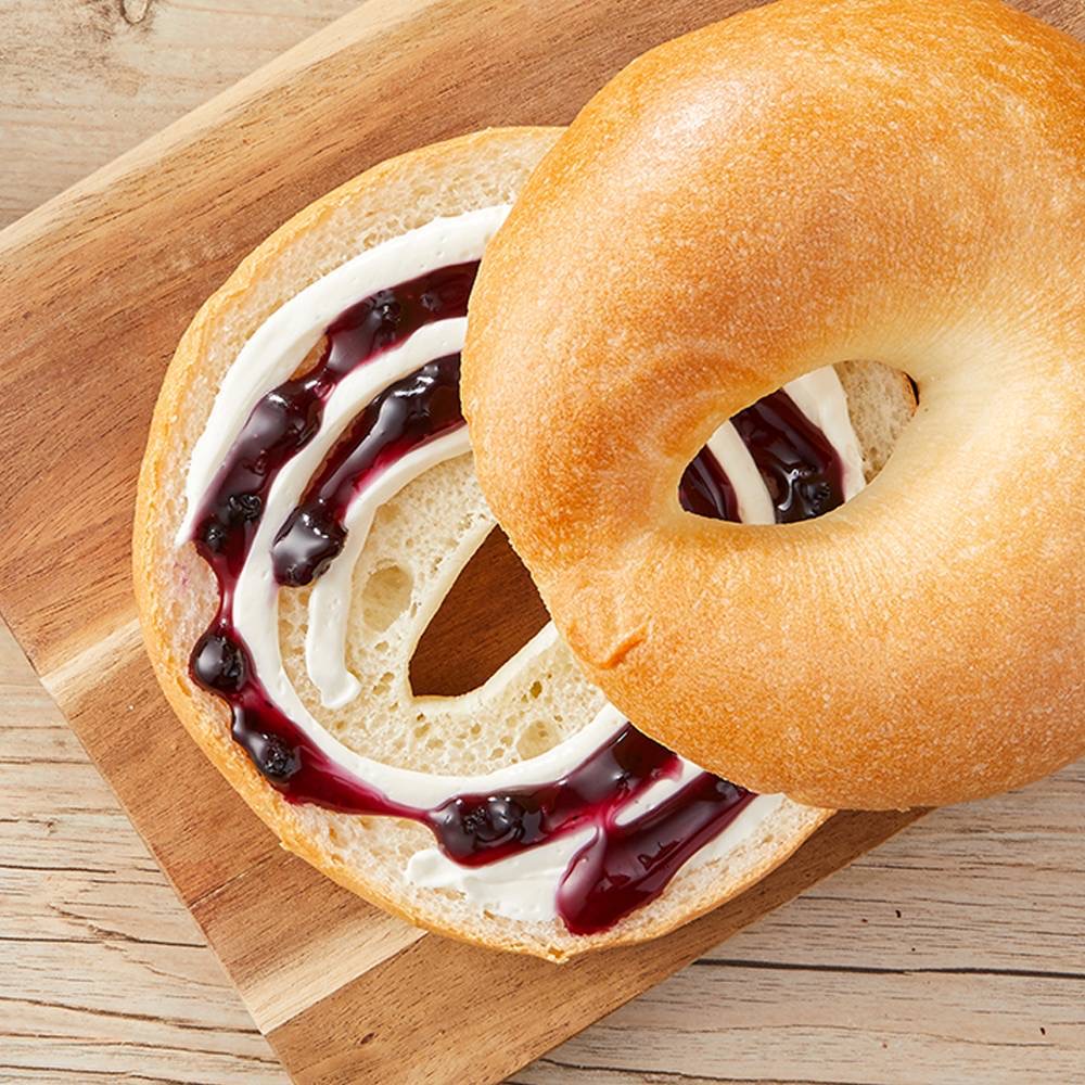 貝果的本體有分成一般原味以及灑滿乳酪絲的口味,兩種都非常推薦試試看,以及還有一種是加上藍莓的貝果