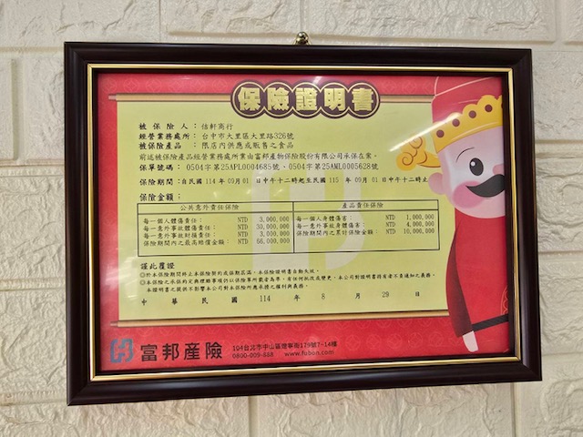 前幾年食安的問題層出不窮,蜂咖啡還有與富邦產險合作,保險店內供應的販售產品,承擔所有食物的安全責任