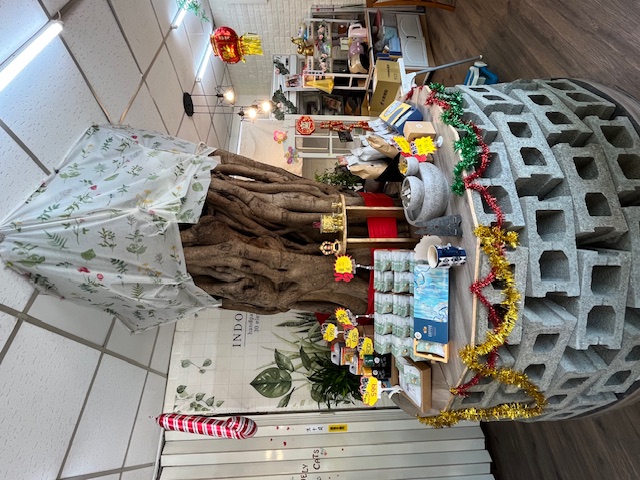 店內空間不大但是充滿溫馨,可以選擇坐在窗邊的座位,也可以選擇坐在旁邊的四人座位,店內中間有一棵很大百年的榕樹穿越整個房子,所以招牌上才會特別寫上榕樹下的蜂咖啡